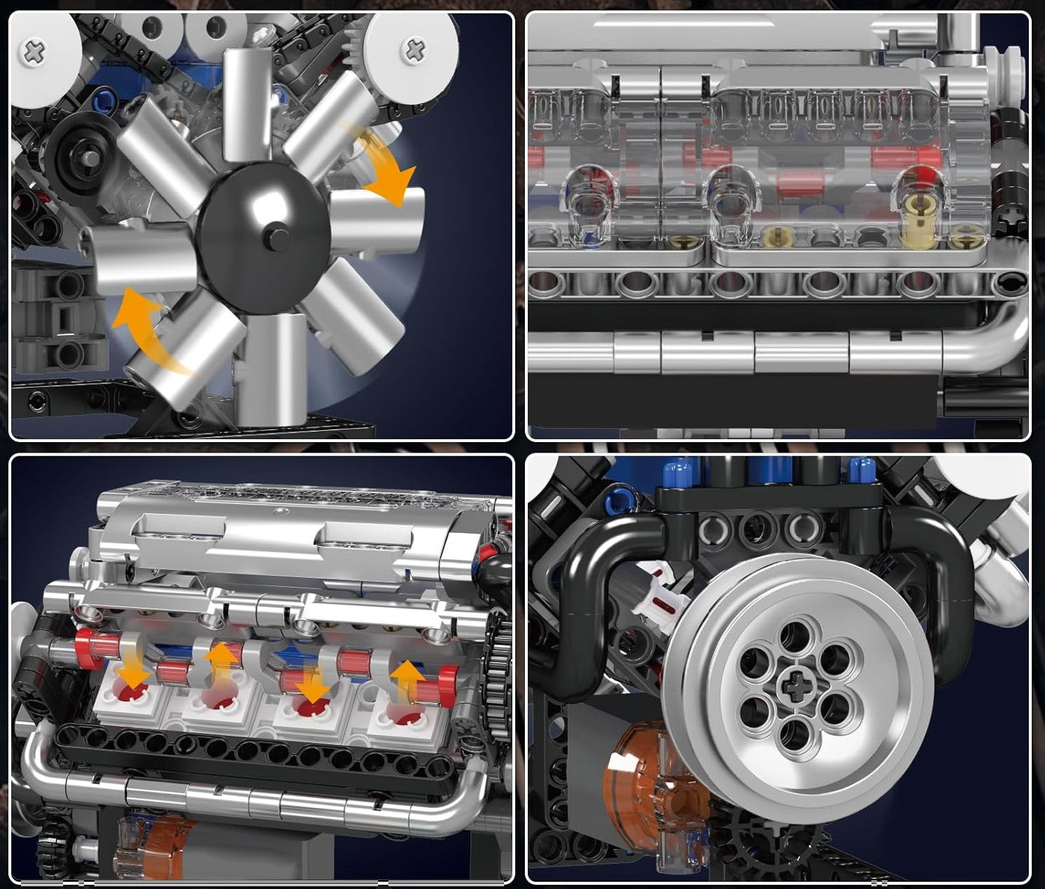 🔋 Działanie elektryczne: Obserwuj, jak tłoki się poruszają, a koła zębate obracają, gdy Twój silnik ożywa.